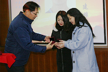 紧接着,大会的氛围进入了高潮,高总亲自为工龄满十五年的26位员工代表颁发了公司专门定制的金币,刻在金币上的“十五周年奉献”几个字,在纯金打造的金币上闪烁着耀眼的光芒。