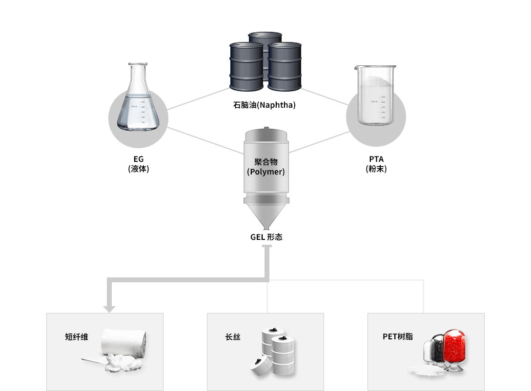 聚酯原料PTA(精对苯二甲酸)和EG(乙二醇)通过加热加压的聚合反应,