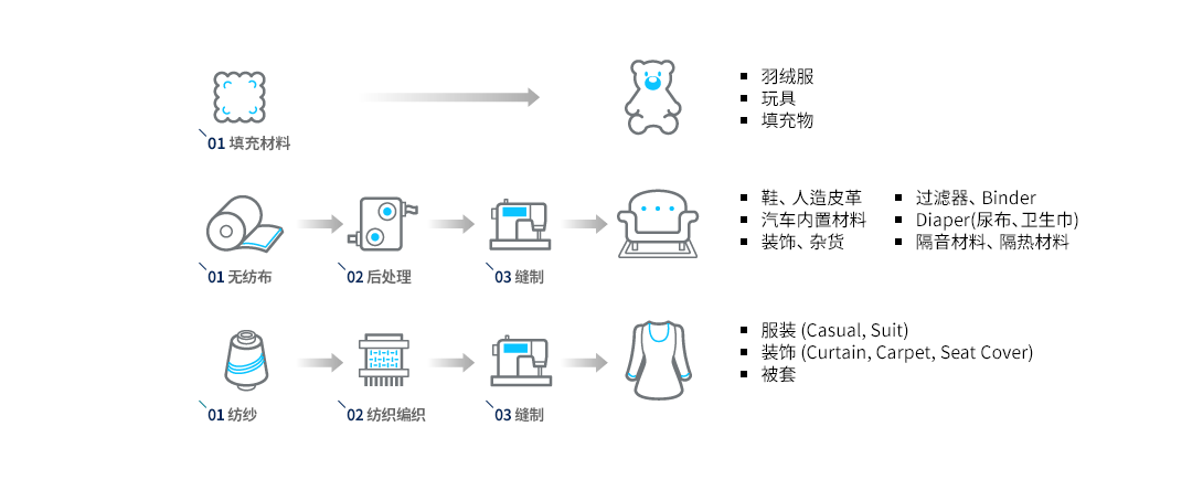 Huvis以韩国第一的短纤维生产能力为基础,通过不断的研发,